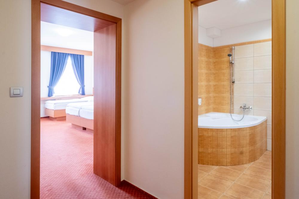 Čtyřlůžkový pokoj klasik nabízí pohodlné ubytování až pro čtyři osoby. Pokoj o rozloze 43 metrů čtverečních je vybaven televizí pro chvíle odpočinku a bezdrátovým internetem, který vám umožní zůstat v kontaktu s okolním světem. K dispozici je také hotelový textil a centrální topení, které zajistí příjemnou teplotu v každém ročním období. Pro vaše pohodlí je v pokoji vana a WC.